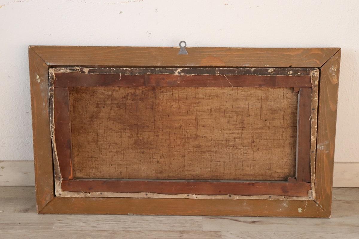 Der Holzrahmen, der zwar nicht aus derselben Zeit stammt wie das Gemälde und einige Gebrauchsspuren aufweist, verleiht dem Bild einen zusätzlichen Reiz und rundet dessen zeitlose Qualität ab.