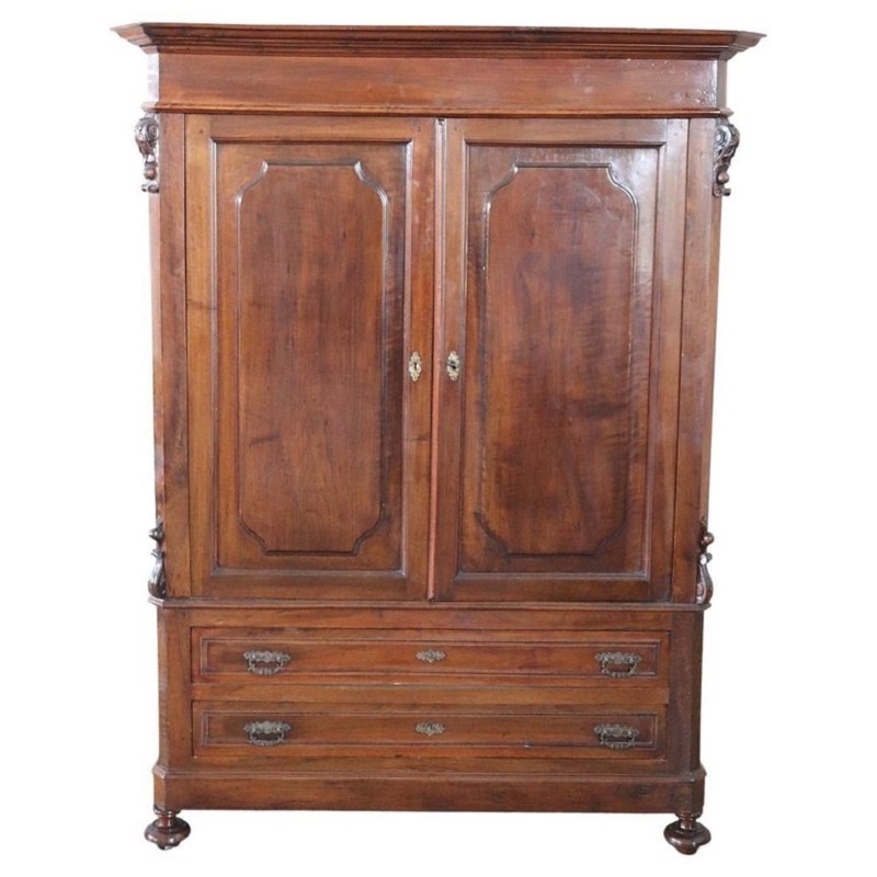 Delizioso armadio antico, epoca ultimi decenni del secolo XIX realizzato in noce massello. Dotato internamente di barstone per appendere abiti e nella parte bassa di due pratici e ampi cassetti. Molto semplice e lineare adatto per essere inserito anche in un ambiente moderno dove si voglia dare un tocco di calore. Ottime condizioni possibili degni di usura nella carta di foderatura dei cassetti. Vi consigliamo comunque di guardare bene in dettaglio tutte le foto allegate. Proposta ad un’ottimo prezzo trattabile vi invitiamo ad inviarci le vostre proposte di acquisto le valuteremo con piacere.