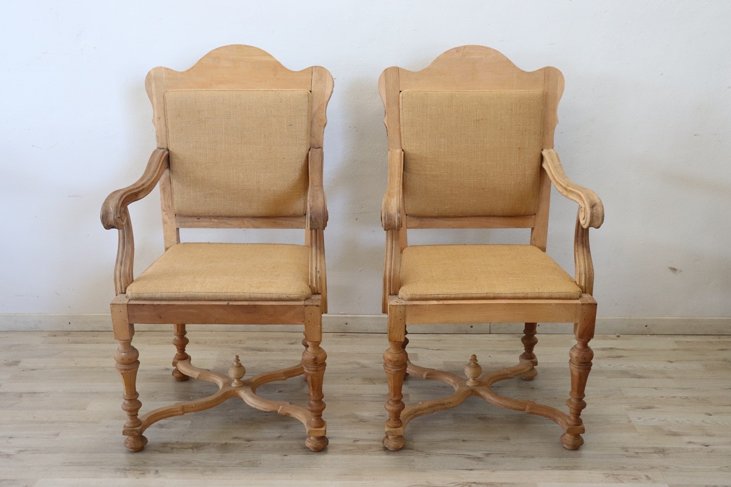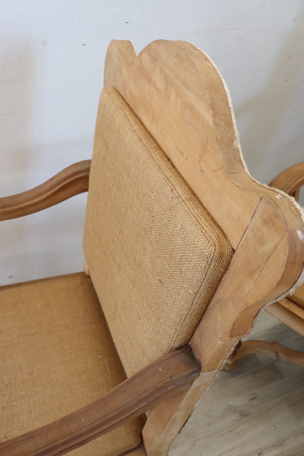 Coppia di poltrone particolari molto confortevoli. Realizzate in legno di pioppo intagliato e lasciate a finitura naturale del legno senza colore o vernice. Tappezzeria perfetta restaurata con utilizzo di juta come rivestimento. L’uso di materiali naturali senza modifiche o alterazioni rende a queste due poltrone un effetto speciale. Queste due maestose poltrone sono perfette per essere utilizzate a capotavola o ai lati di un camino. Ottime condizioni. Vi consigliamo comunque di guardare bene in dettaglio tutte le foto allegate. Proposta ad un’ottimo prezzo trattabile vi invitiamo ad inviarci le vostre proposte di acquisto le valuteremo con piacere.
