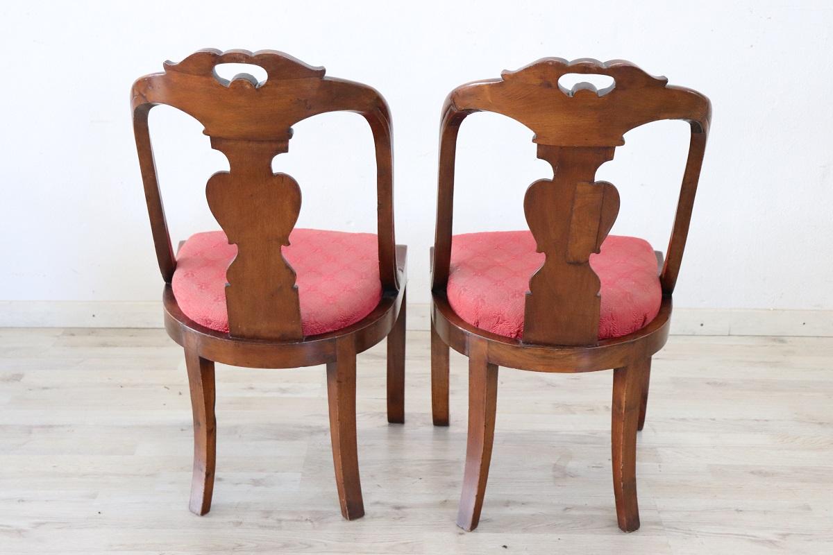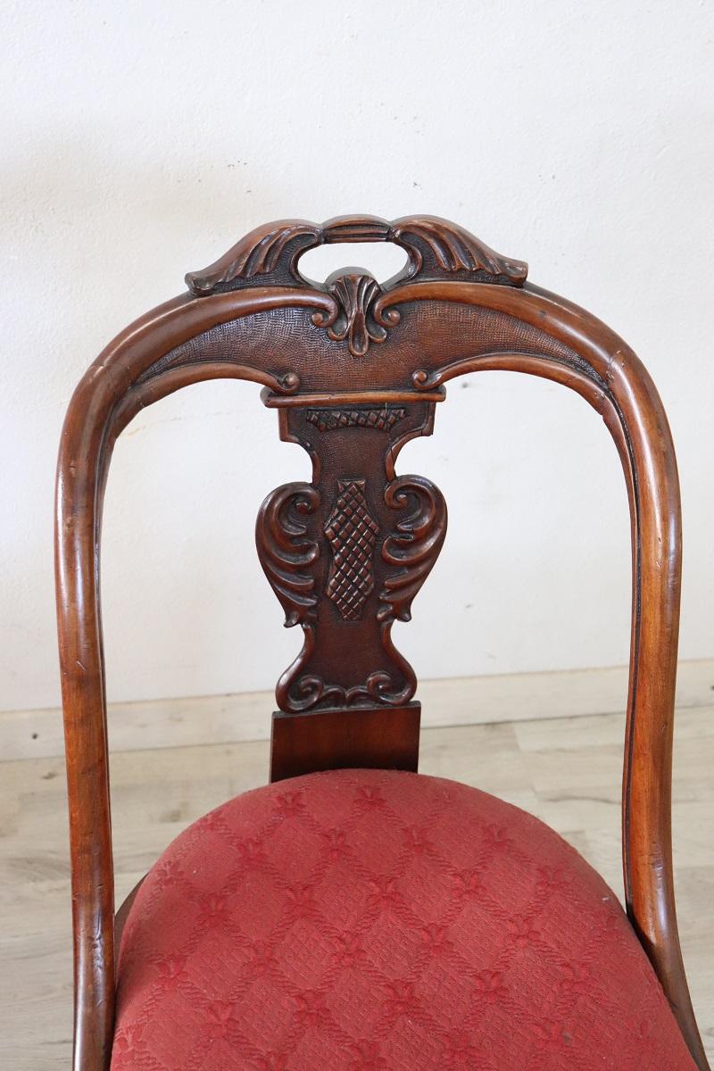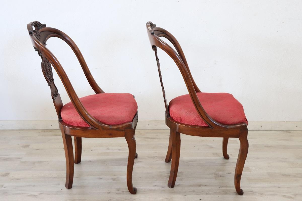 Coppia di sedie antiche in noce intagliato epoca Carlo X