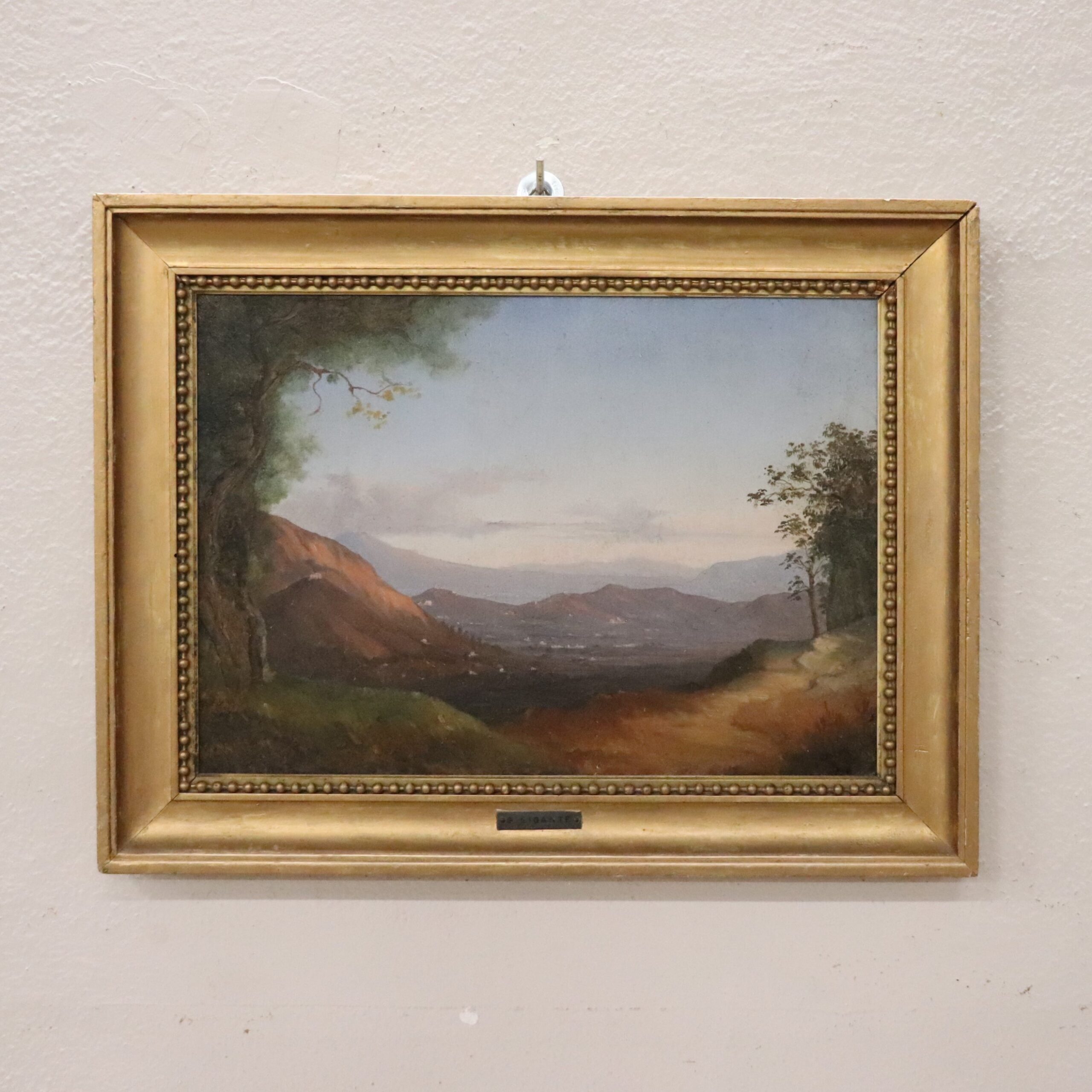 Questo piccolo dipinto veduta di Napoli secolo XIX cattura la bellezza dei paesaggi che circondano Napoli con un fantastico romanticismo. Il paesaggio dipinto suggerisce che si tratti di un panorama di Napoli catturato dalla collina dei Camaldoli. Questa zona era molto amata dai pittori napoletani dell’Ottocento perché da questa collina si può godere di una suggestiva vista di Napoli e delle montagne circostanti. Questo dipinto è caratterizzato da una luce soffusa e da una resa atmosferica molto romantica del paesaggio. Se conoscete Napoli e i suoi dintorni, rimarrete affascinati da questo dipinto. Un dipinto meraviglioso che incanterà i vostri ospiti! Il dipinto è accompagnato con una splendida cornice in legno dorato del XIX secolo.