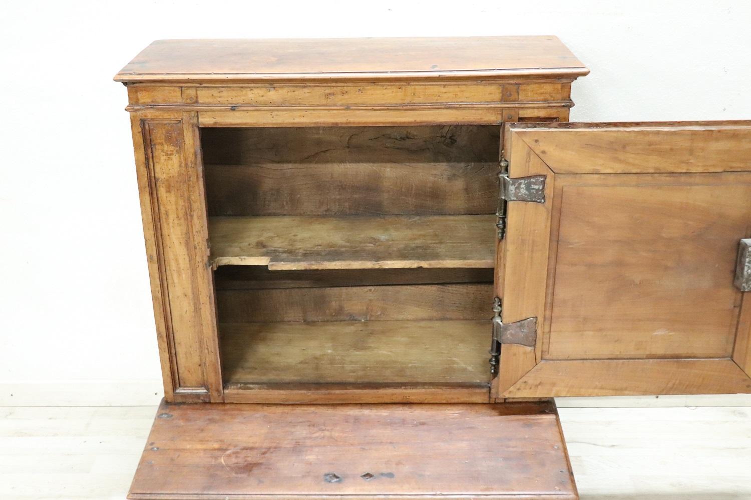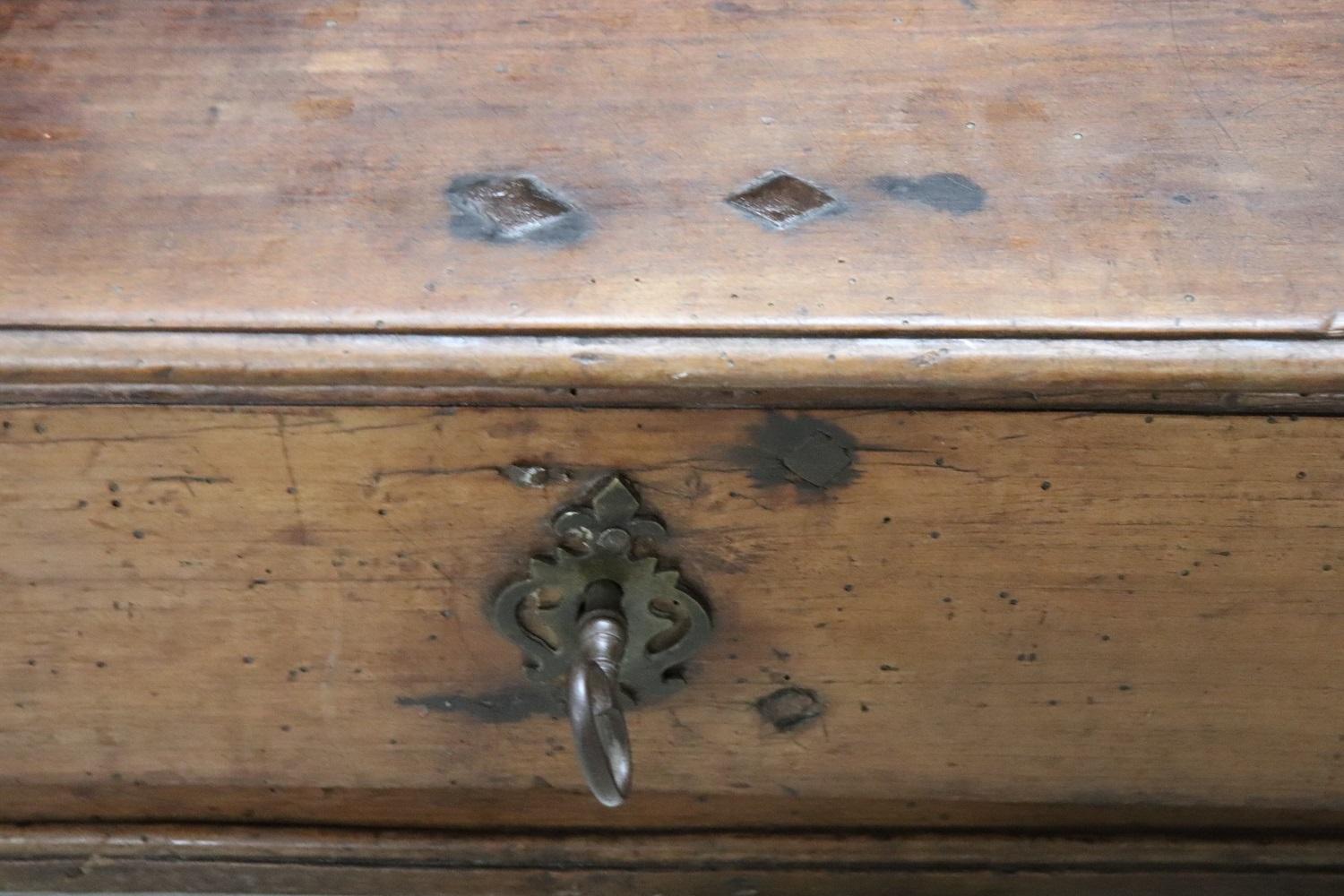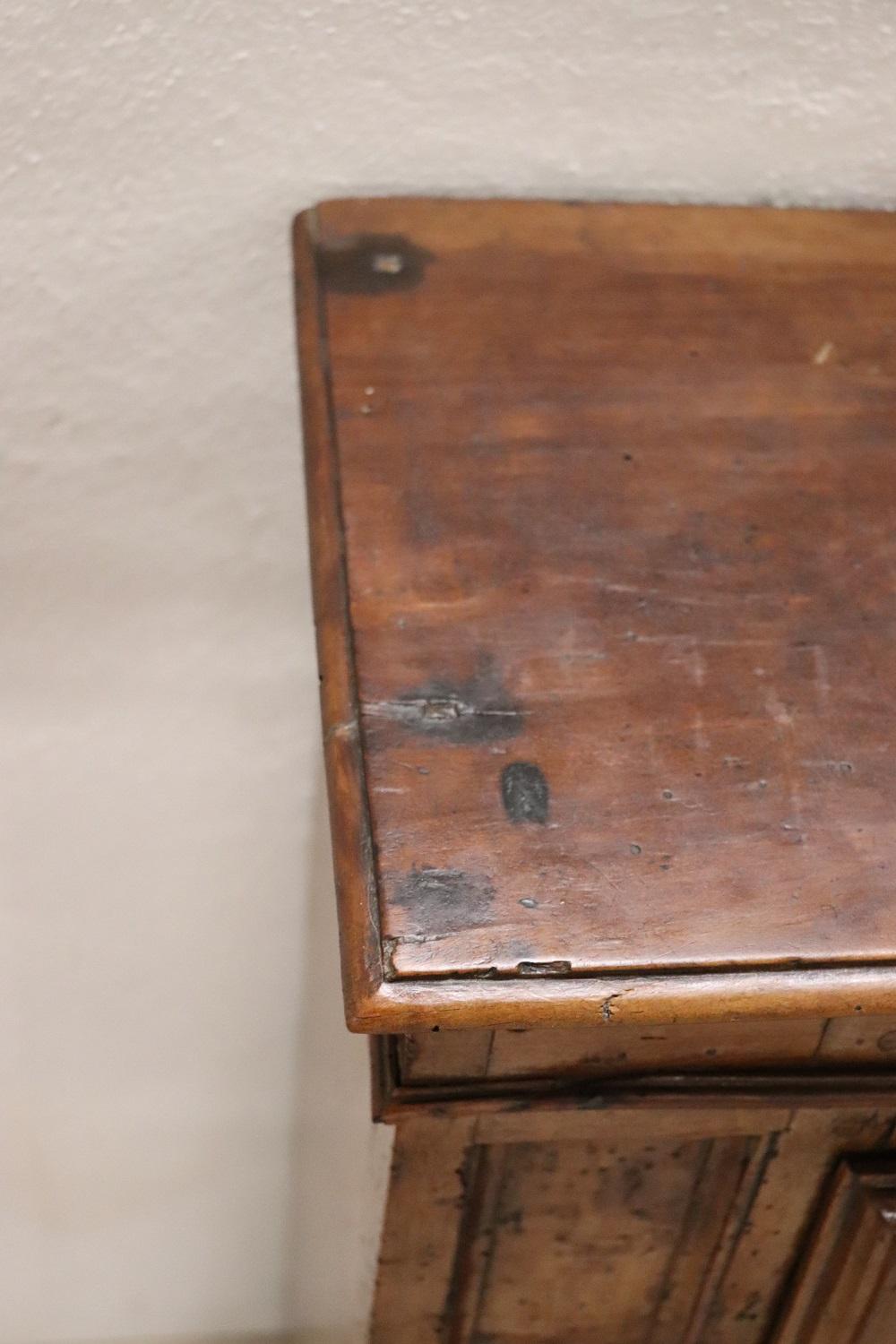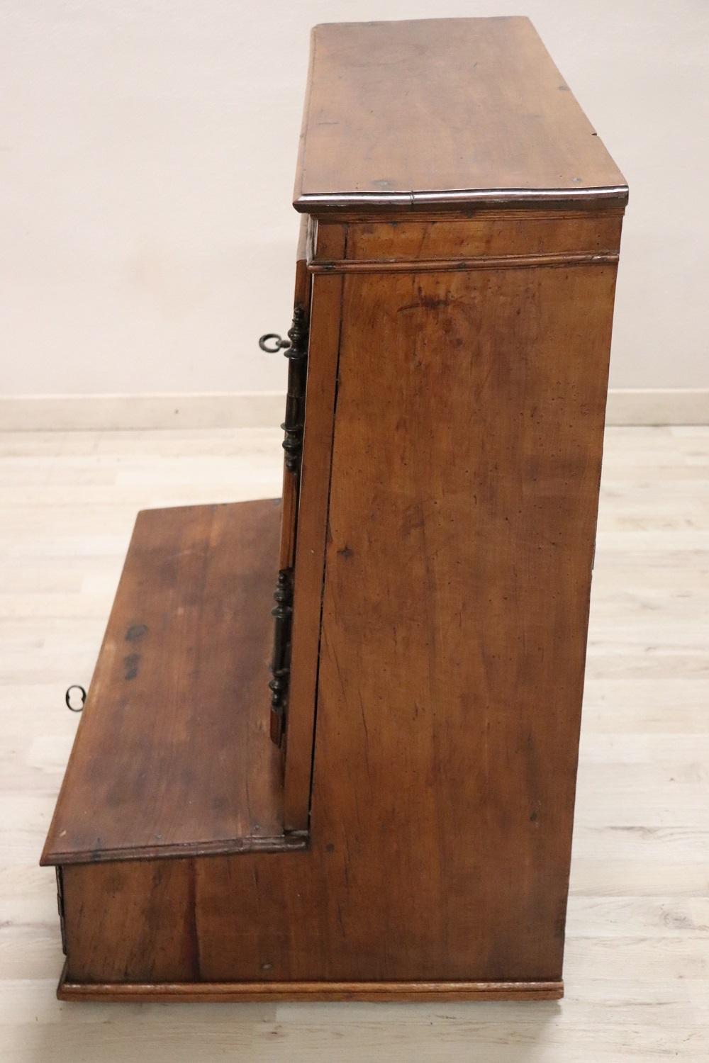 Raro inginocchiatoio italiano antico, metà del XVII secolo piena epoca barocca Luigi XIV. Realizzato in noce massiccio con decorazioni a rilievo intagliate nel legno sul pannello frontale. Di chiaro gusto ebanisteria barocca piemontese. Nella parte dedicata alle ginocchia è presente un vano. Di grande valore tutta la ferramenta in ferro forgiato a mano e coeva, fantastiche grandi chiavi antiche del XVII secolo. Ottimo stato di conservazione. Questo fantastico inginocchiatoio è un pezzo di storia che potrebbe essere esposto in un museo. Questo bellissimo arredo antico trova collocazione facile per le sue piccole dimensioni e può essere utilizzato per le vostre preghiere quotidiane o semplicemente com particolare complemento di arredo. Ottime condizioni vi consigliamo comunque di guardare bene in dettaglio tutte le foto allegate. Proposta ad un’ottimo prezzo trattabile vi invitiamo ad inviarci le vostre proposte di acquisto le valuteremo con piacere.