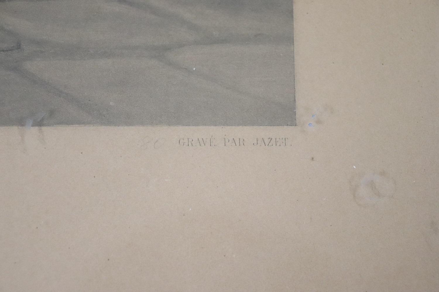Bella coppia di incisioni antiche della metà del XIX secolo con cornice originale coeva in legno dorato. Entrambe incise da Jazet Jean Pierre Marie ( Francia 1788/ 1871 ca.) su soggetti diversi.