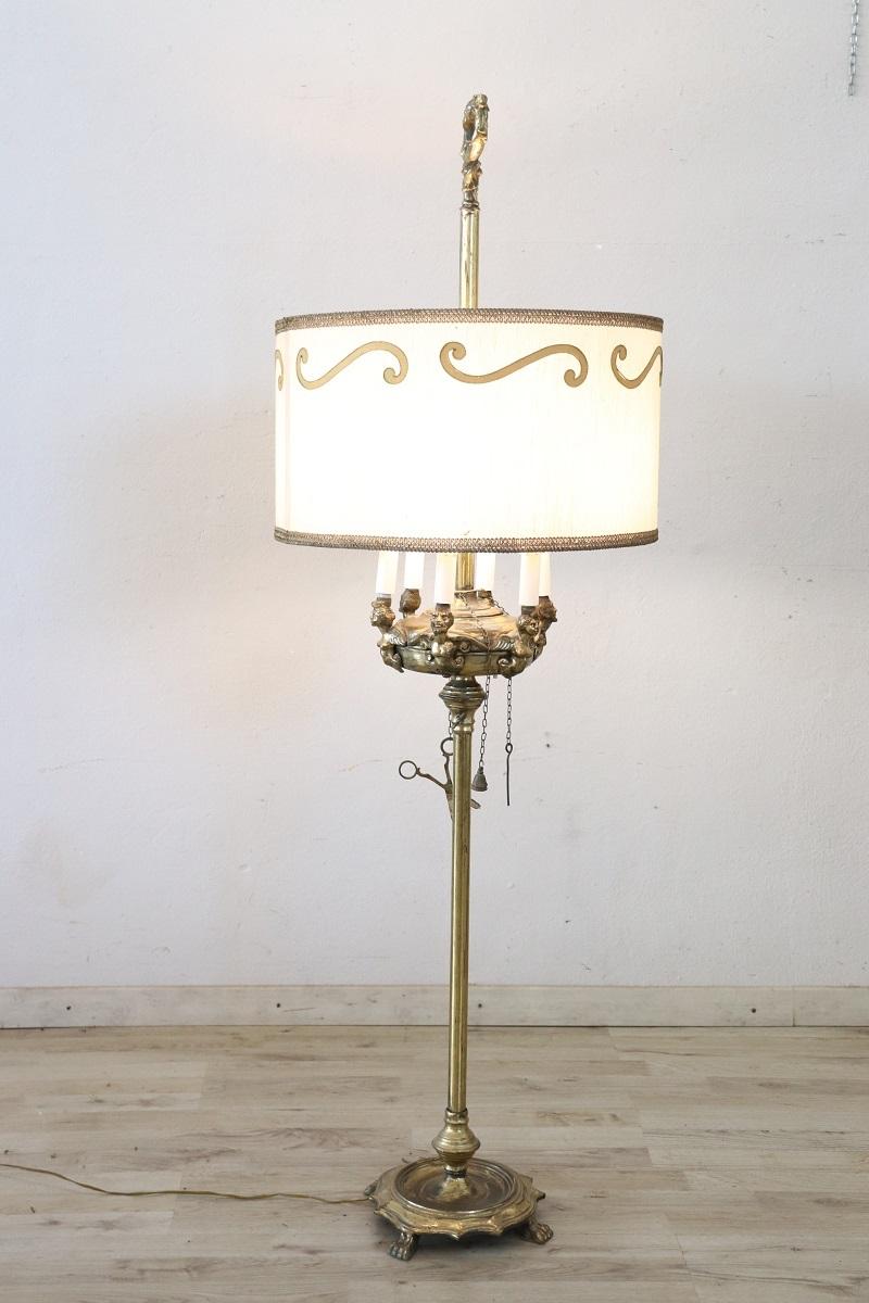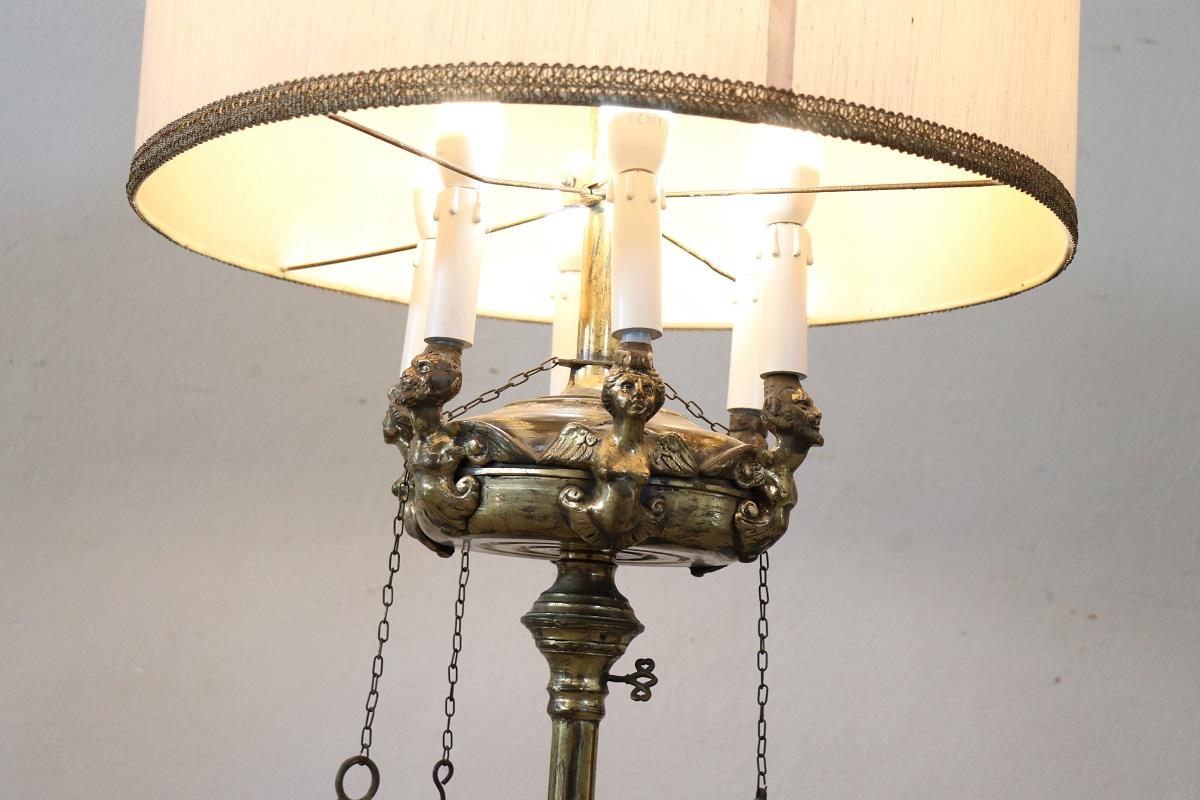 Lampada da terra in stile antico anni ’60. Bellissima lampada da terra in stile antico. Realizzata in ottone dorato. Caratterizzata da una ricca decorazione cesellata. Questa lampada si ispira alle antiche e famose lampade ad olio fiorentine. L’ottone presenta una patina antica. Vi consigliamo di guardare bene in dettaglio tutte le foto allegate. Proposta ad un’ottimo prezzo trattabile vi invitiamo ad inviarci le vostre proposte di acquisto le valuteremo con piacere.