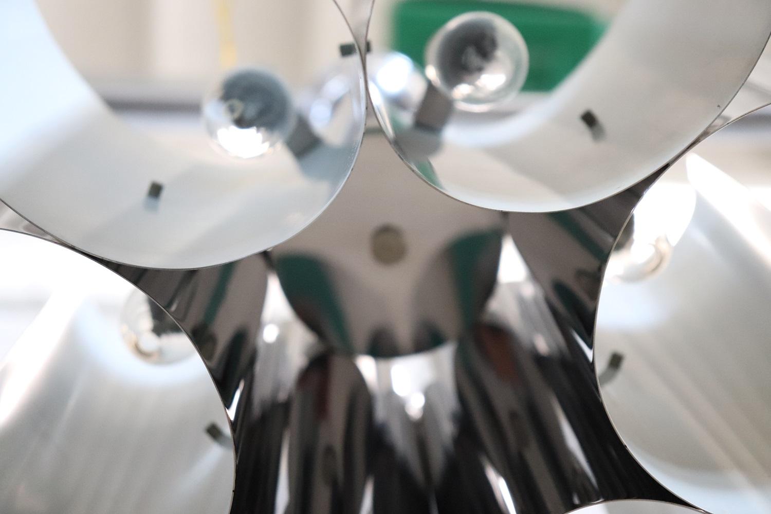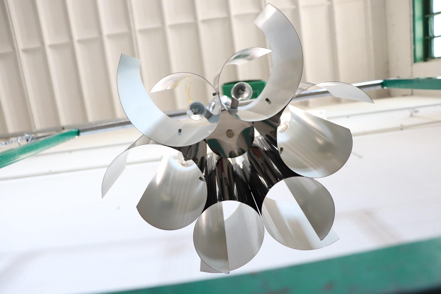 Lampadario Space Age a 6 luci in acciaio, anni ’70
