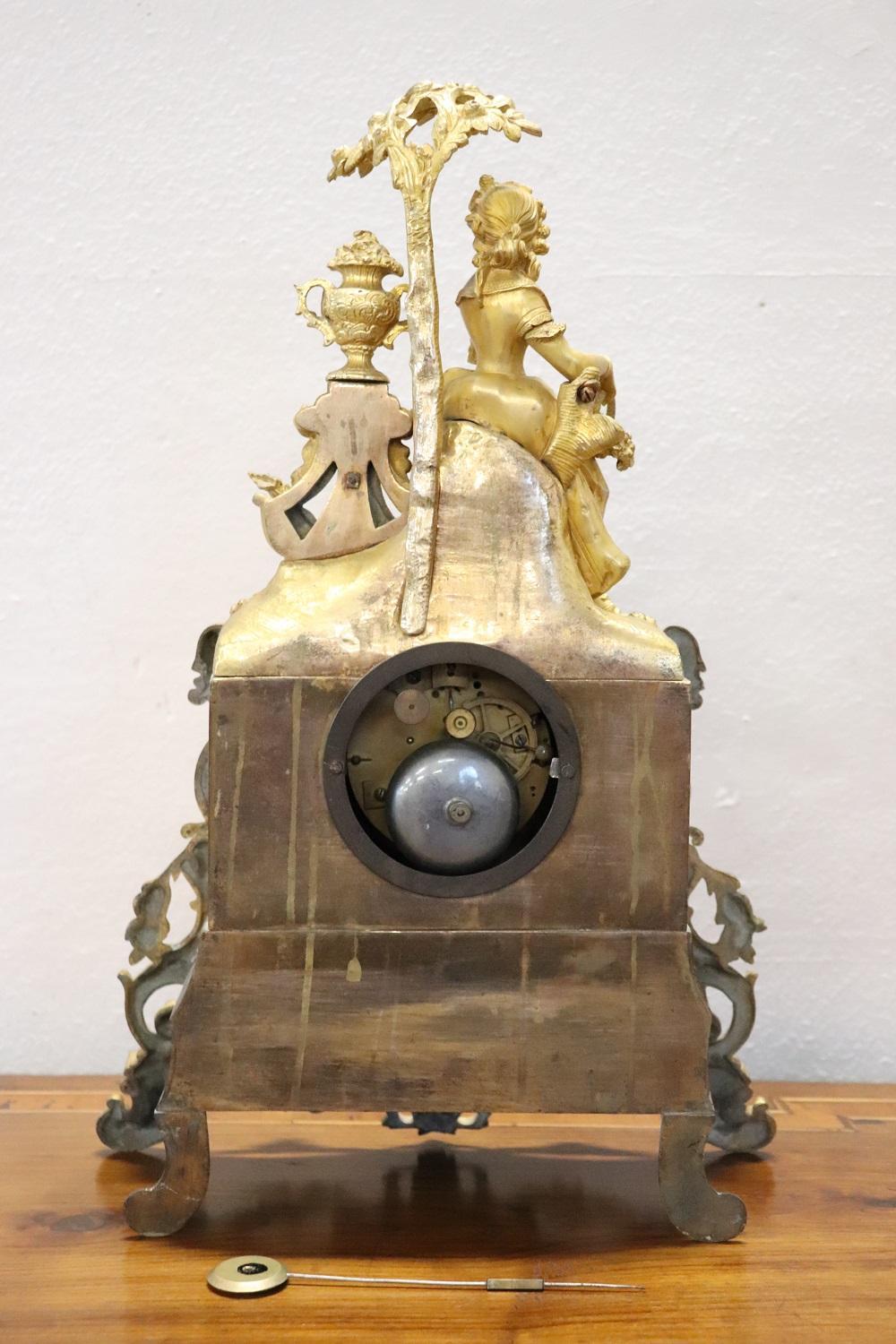 Orologio da tavolo antico parigina del XIX secolo in bronzo dorato. Caratterizzato da una raffinata decorazione cesellata del bronzo, nella parte superiore una dolce fanciulla appoggiata a un albero in attesa del suo innamorato. Il meccanismo è presente ma attualmente non funzionante, necessita di una revisione. La doratura è in perfette condizioni e di grande valore. Proposto ad un’ottimo prezzo trattabile vi invitiamo ad inviarci le vostre proposte di acquisto le valuteremo con piacere.