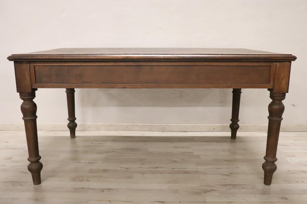 Le gambe tornite, robuste e ben lavorate, richiamano l’artigianato tradizionale del XIX secolo, conferendo al tavolo un aspetto classico che si sposa perfettamente con interni di montagna o di campagna, ma che riesce anche a portare calore e carattere in ambienti moderni.