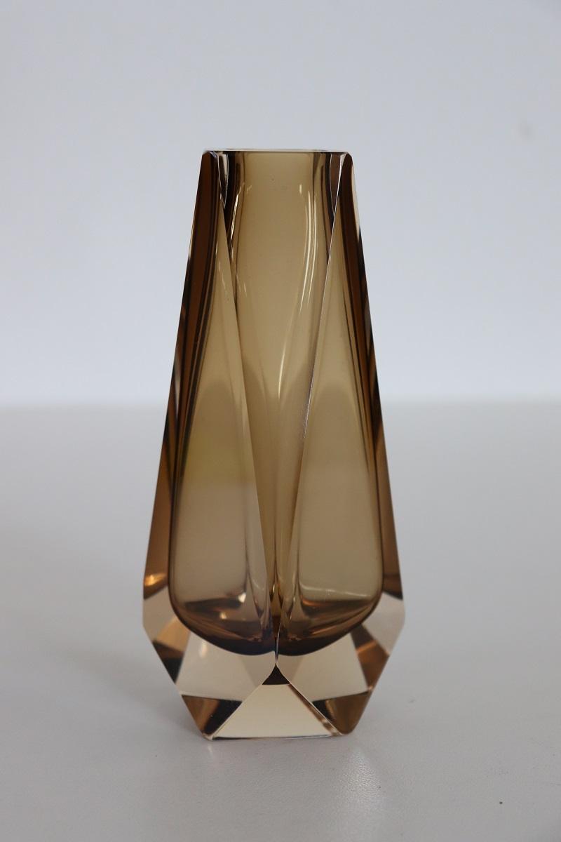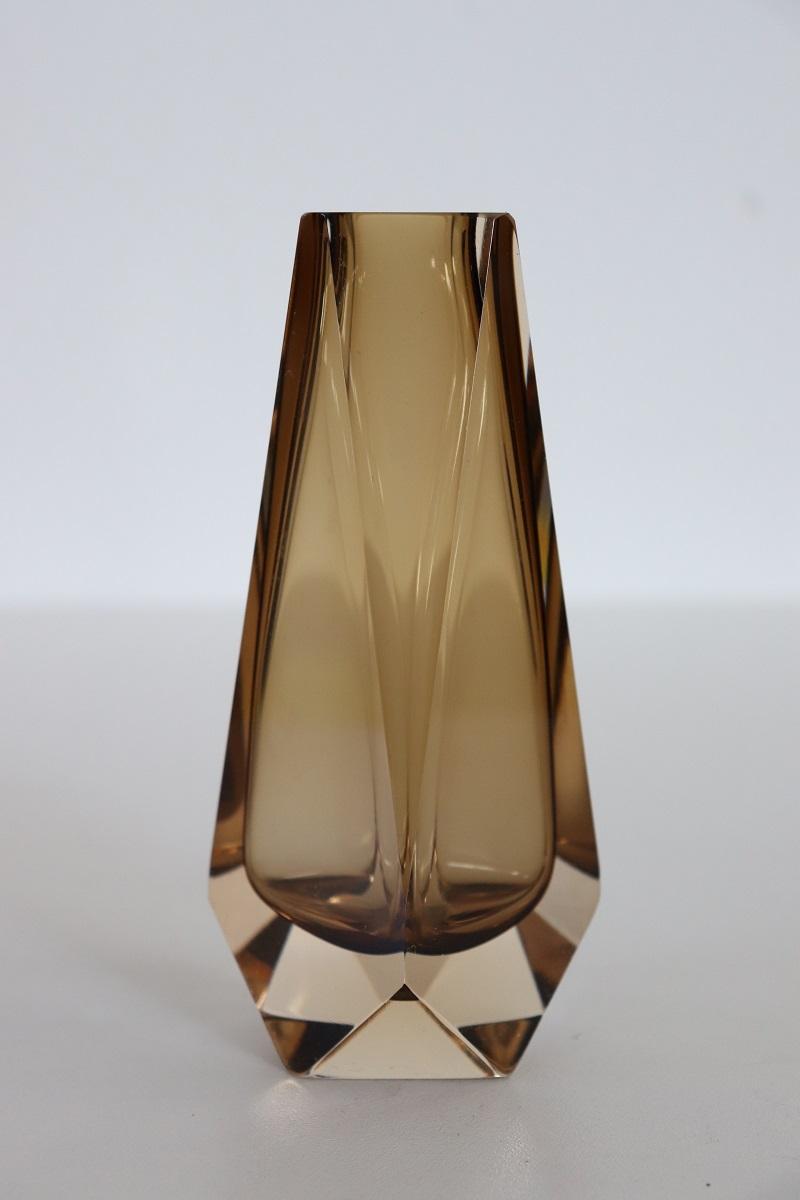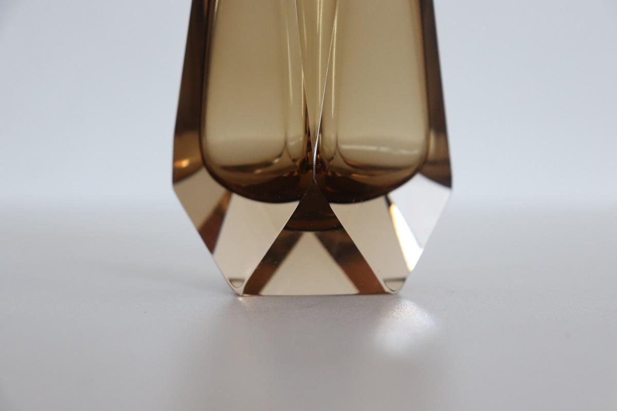 Vaso Murano anni ’60 di Mandruzzato in vetro sommerso ambra fumé